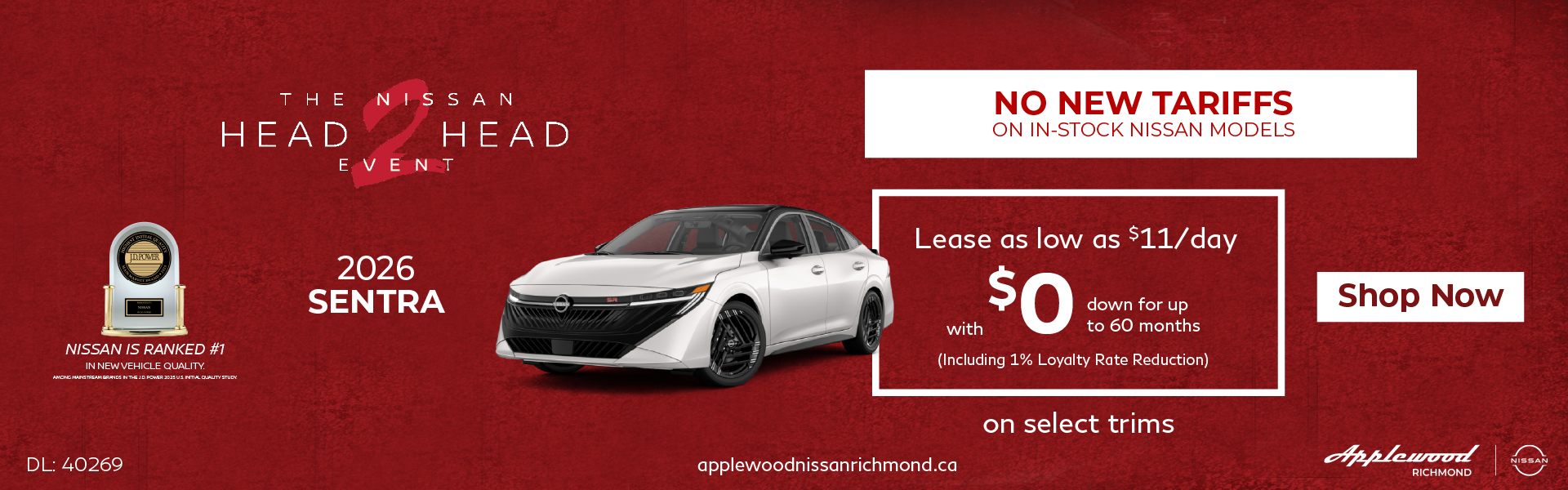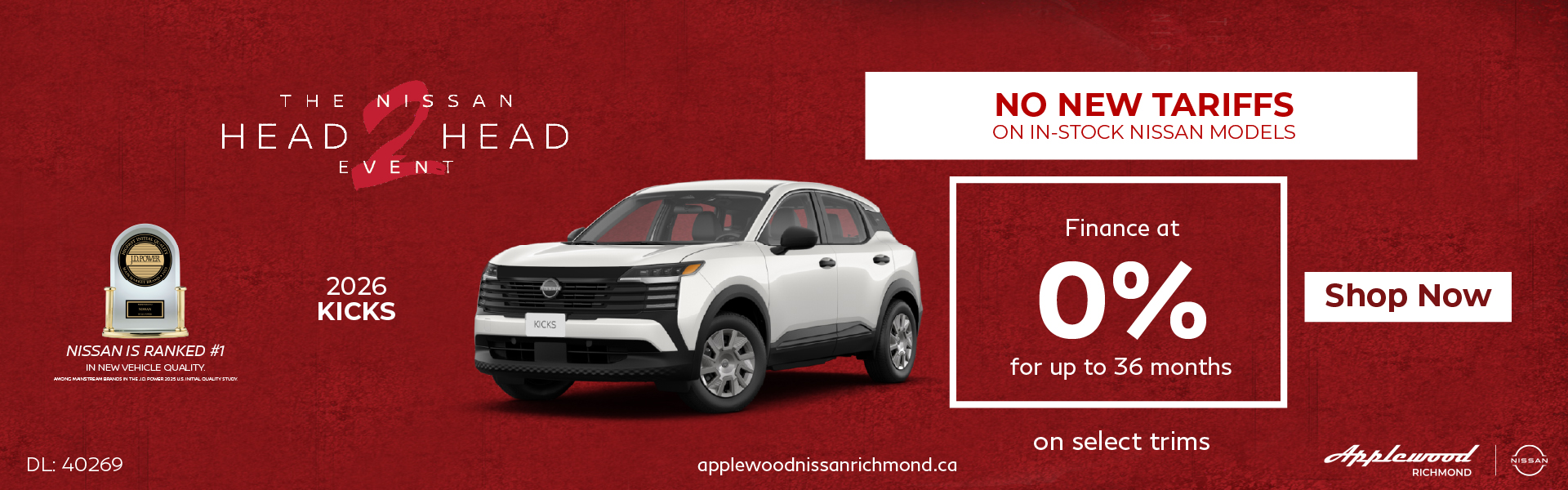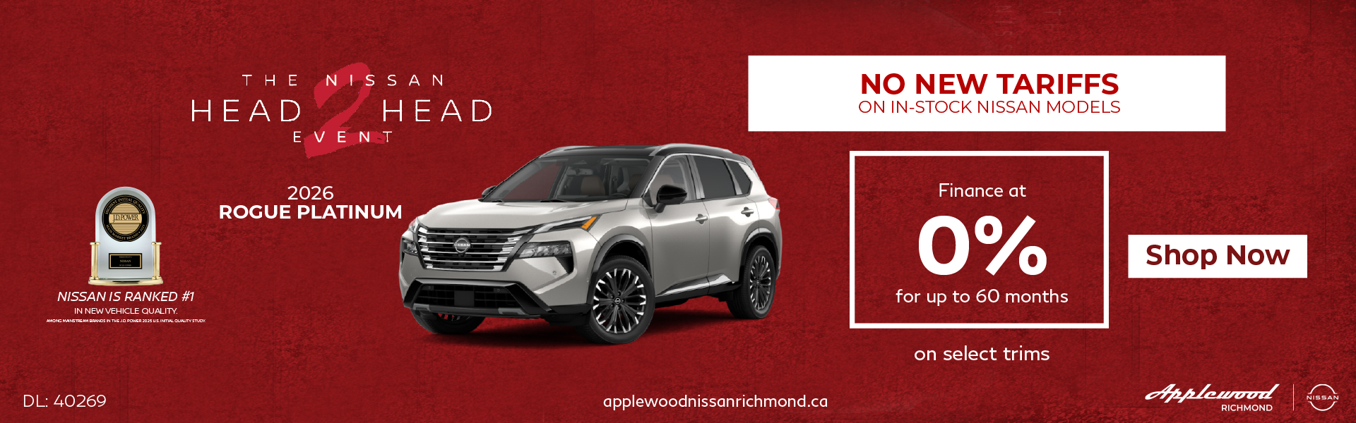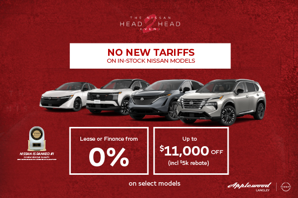 Disclaimer: Finance and Lease offers on approved credit. Regional offers, lease and finance conditions apply. See your local Nissan dealer for more information. Use of any calculation and/or tools on https://www.applewoodnissansurrey.ca does not constitute an offer of direct financing or any particular lease, finance, purchase option or transaction. Calculation and tools are intended for illustrative purposes only. Rates and requirements may vary depending on credit worthiness. Every effort is made to ensure the accuracy of the content on the pages on https://www.applewoodnissansurrey.ca. In the event of a discrepancy, error or omission, vehicle prices, offers and features as established by Nissan Canada and participating Nissan dealers in Canada, will prevail.